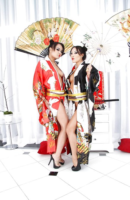 Две японки в цветастых халатиках проводили время со своим парнями, которых девушки возбуждали на расстоянии. Когда одна телочка расстегнула халатик, она показала свои нежные титьки, а еще распахнула пилотку. Крашенная лярва повторила за своей подружкой, и обе красотки оголили нежные попочки, которые выглядели небольшим и аппетитными. У одной шкодницы на писе красуется пирсинг, и девушка намерено прогибает спинку, чтобы оказать обе дырочки. Красотки засовывают шарики в жопы, и кокетливо вертят своими гладким булками.