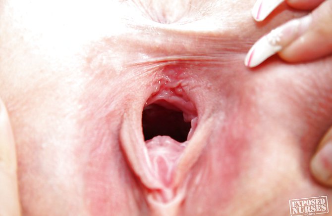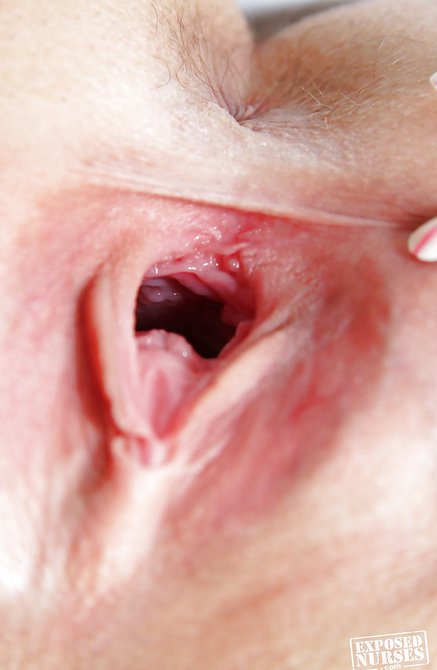 Когда симпатичная медсестра пришла на работу раньше обычного, она решила немножко пошалить в приемном кабинете. Эта расторопная девушка с большим желанием расстегнула белый халатик и показала свои тоненькие трусики, которые намеревалась скатить по бедрам. Веселая работница медицины просто осталась без трусов и раздвинула гладенькие ляжки в стороны, показывая свою промежность. Девушка прикасается к своему разработанному влагалищу длинными пальцами, и намеренно светит большую дырочку внутрь.
