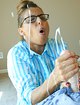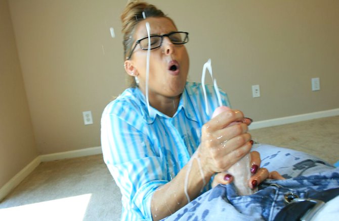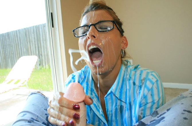 Сперма брызжет девушке на лицо и практически полностью покрывает ее мордашку. Очкастая бабенка приложила максимум усилий, чтоб довести толстый мужской член до эрекции. Обеими руками, возбужденная деваха трудится над торчащим инструментом и как следует надрачивает горячую плоть. Языком полизывает розовую залупу и старается как можно быстрей довести кавалера до сильного оргазма. Еще несколько хороших усилий и с кончика члена начнет вылетать белое семья. Сперма брызжет в разные стороны и попадает как девушке на лицо, так и парню на штаны.