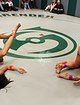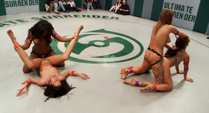 Когда на ринге остались голые девки, которые увлеченно стали тискать друг друга за интимные места, зрители взяли в руки гаджеты и стали снимать происходящее. Две девушки просто легли на спину, а их соперница засадила в нежные киски свои руки, и стала ебать сразу двух шалав, которые способствовали ей движениями бедер. В дальнейшем в ход пошли и страпоны, которыми две шалавы трахали подруг сверху, жестко вгоняя в их киски крепкие игрушки. Все без исключения лесбиянки на полу получили отличное удовлетворение во время траха.