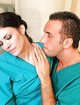 В свою ночную смену симпатичная медсестра стала подавать знаки внимания хирургу, который собственно был видным мужчиной и не стал отказывать себе в наслаждении. Когда красотка осталась наедине с желанным доктором, она просты движением руки коснулась его пениса через штаны, на что тот никак не отреагировал. Но вот когда лярва встала на колени и безудержно обхватила головку члена губками, она старательно возбудила партнера. Занимаясь сексом в больнице, доктор и медсестра ебутся на небольшом диванчике в ординаторской.