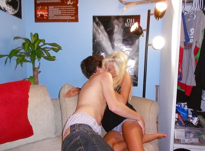Парни устроили жаркий секс в студенческой общаге с двумя безответственными телками, которых они сняли после занятий. Две молоденькие шалавы настолько веселы и игривы, что все время прикалываются с пацанами и подшучивают над ними. Даже после того, как блондинка с брюнеткой приступили отсасывать член у кучерявого приятеля, они не перестали кокетничать с задором. Насосавшись по горло, голая блондинка села пиздой на хуй и весело скачет на нем влажным влагалищем. Занимаясь сексом в общаге, откровенные студентки показывают парням свои способности и выпендриваются перед друг другом, кто из них лучше сосет и трахается.