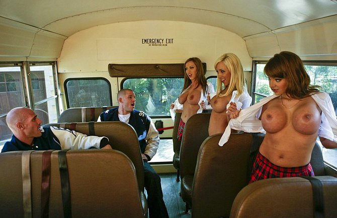 Когда девушки из группы поддержки вместе с горячими футболистами возвращалась на автобусе после окончания матча, красотки стали перегибать палку, и явно напрашивались на групповой секс. Одна из красоток решительным образом покрасовалась своими большим титьками, которые даже дала полизать лысому хахалю, а затем принялась обрабатывать ему член губами. Девушки стали снимать с себя трусики и сосать стояки своих приятелей, после чего они классно потрахались в подготовленные ватрушки прямо в автобусе.
