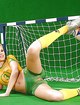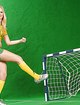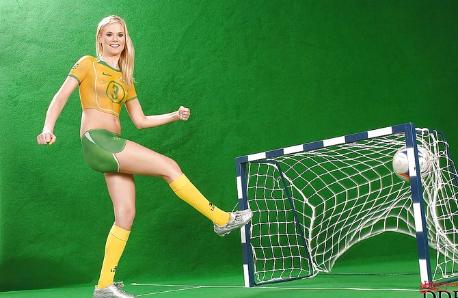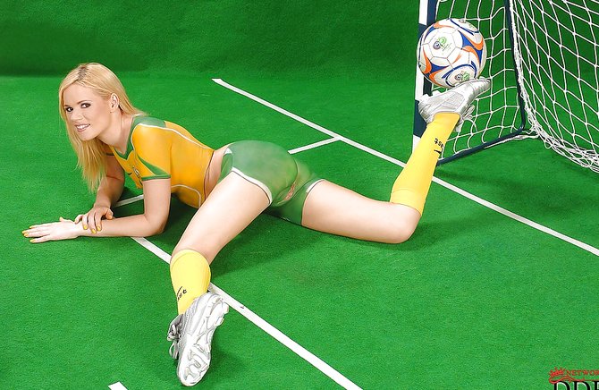 Сексуальная девушка вышла на небольшой искусственный газон мини футбольного поля, и показывает бодиарт на голом теле. Она присаживается на мяч своей попкой, и начинает тереться, откровенно выставляя свою киску под прицел. Эта большеглазая шлюшка выглядит просто интересно, а ее почка с потянутыми ягодицами просто аппетитная. Эта штучка обладает неплохой растяжкой, при этом она поднимает одну ногу едва выше головы, и светит всю туже розовую промежность. Натуральные титьки слегка сливаются с окрашенным телом, однако тоже смотрятся великолепно.