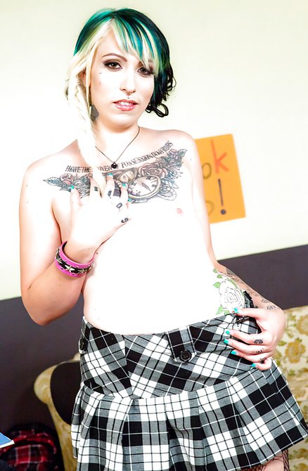 Девушка с крашенными волосами ласкает свою киску рукой, и получает удовольствие во время мастурбации. Очень несдержанная маруха частенько придается разрядке, когда остается надолго без своего парня, и заменяет его член своей рукой, которой она классно стимулирует клитор. Телочка с большой татуировкой на груди меняет позу, и продолжает дрочить ватрушку, которая вытекает соком. Девушка в чулках вставила пальчик в дырочку, и ласкает свою небольшую киску, и при этом стонет как угорелая и необузданная сучка.