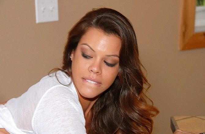 Телка пришла одолжить у соседа немного денег, а он ее за это вдул большим членом прямо на кухне. Сучка была поражена его настойчивости и без всяких сомнений, повелась на его слова и ласки. Сейчас уже голая девчонка с маленькими титьками, стоит раком у стола, и стонет от твердого члена, который трахает ее пизденку. Сучка то и дело, что успевает менять позы и снова принимает в влажную пещерку здоровый мужской инструмент. Смуглая красотка была хорошо оттрахана и з авремя порки, успела неоднократно кончить самцу на член и яйца. Чувак смачно вдул барышне на кухне и даже покормил ее спермой.