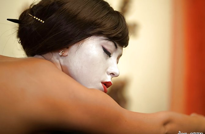 Очень расторопная накрашенная девушка в цветастом халатике пригласила клиента прилечь на мягкий матрац, а сама слегка расстегнула халатик и прошлась мимо парня, показывая ему свое шоколадное сексуальное тело. Темноволосая телочка склонилась над пенисом парня и облизала его головку языком, а затем слегка шлифонула ствол губками в помаде, и вновь вернулась ласкать головку. Фигуристая гейша откровенно сосет эрегированный столбняк, заем она садиться на него сверху великолепной нежной мандой и страстно трахается.