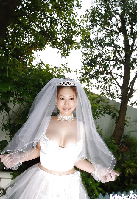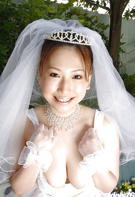 Очень приятная девушка японского происхождения выходила за муж за любимого человека, с которым они планировали жить долго и счастливом, впрочем как и все остальные молодожены во время начала супружеской жизни. Как только свадебная церемония закончилась девушка со своим мужем сразу же оправилась домой, чтобы поскорей обкатать подаренное им новое брачное ложе. Только игривая невеста оказалась под крышей дома, как она задрала белоснежное платье и сняла трусики, таким образом засвечивая свою пизду с волосатым лобком.