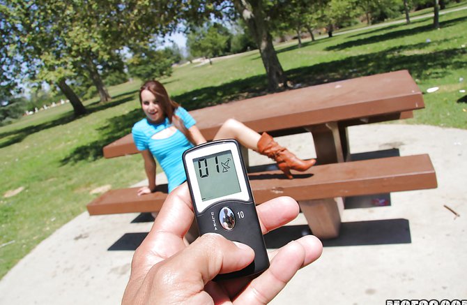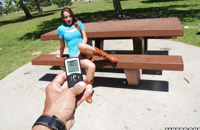 Смазливая девка мастурбирует на улице перед парнем, который снимает ее сексуальную разрядку на мобильный телефон. Брюнетка прогуливалась со своим молодым человеком по парку, где она увидела деревянный столик, за который присела с кокетливым видом. Оголив свои крепкие сиськи, краля раздвинула ножки и стала гладить вагину на глазах в любимого. Парень не растерялся, он стал снимать на телефон, как девушка ласкает свою ватрушку через кружевные трусики. Смазливая молодая девка принялась мастурбировать на улице и получила оргазм под открытым небом.