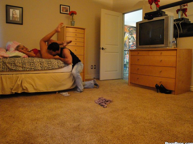 В небольшой комнате хитрый пацанчик снял еблю скрытой камерой со своей знакомой подружкой. Пригласив к себе в дом светловолосую кралю, парень развел ее на секс в течении нескольких минут. Девушка позволила ухажеру снять себя всю одежду, встала на колени и принялась делать улетный сладкий минет. Чувак возбудился сполна, он повернул партнершу попой к себе, вставил член в ее влагалище, и засадил его на всю длину. Домашнюю еблю с голой девчонкой парень снимает на скрытую камеру, о которой его подруга даже не догадывается.