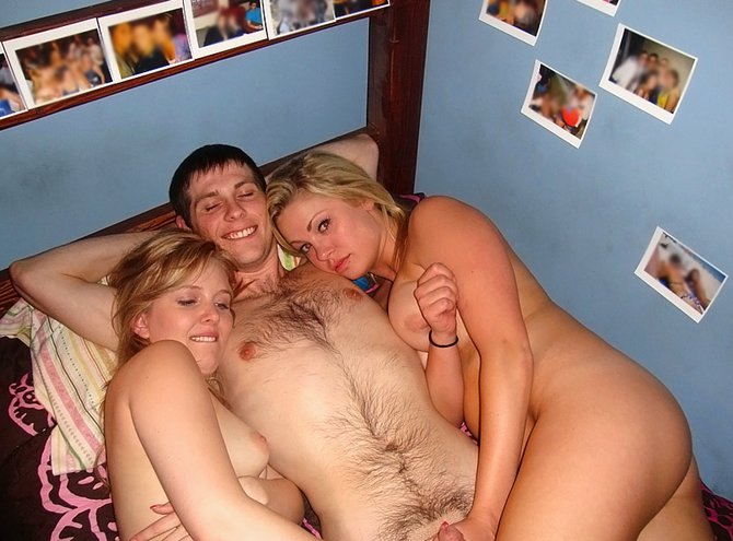 Девушки молодого возраста решили оторваться на вечеринке, которую они устроили в общежитии, куда и пригласили парней. Когда соски изрядно выпили, он стали чудить неимоверно, и это подзадоривало подруг на боле откровенные поступки. Одна краля так совсем сняла с себя трусы, и встала раком посреди комнаты, показывая все присутствующим свои дырки. Молодой парень пристроился к попке трепетной красотки, и трахает ее во влагалище на односпальной кровати. Пьяные голые студентки резвятся на вечеринке, и трахаются с парнями в киски.