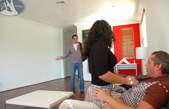 Когда статный парень оказался в гостях у зрелого мужика и его смачной женщины, он был приятно удивлен пикантной картиной. Мужчина прямо у него на глазах стал тискать свою пассию, и даже спустил с нее юбку, которая прикрывала смачные ягодицы. Чувак стоящий рядом не удержался и стал проявлять инициативу, уверенно вливаясь в групповой секс. И вот когда хахаль ввел в пизду своей телки хуй, гость просто вывалил стояк из штанов и поднес его в ротику распутницы. Таким образом мужики стали ебать брюнетку вдвоем на диванчике.