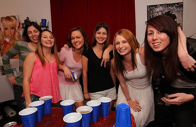 Молодым студенткам очень не хватает развлечений в их скучной жизни, поэтому они частенько собираются вместе в общаге, и устраивают небольшие вечеринки, на которые приглашают свои дружков. Девушки разливают спиртные напитки по стаканчикам, и начинают вертеть своими попками перед услужливыми парнями, которым очень нравится боевой настой распутных телочек. Первой на члене оказалась смышленая брюнетка, которая сама направила ствол в нежную пещеру, и ебется на глазах сокурсников. Страстные студенты трахаются во время секс вечеринки, и меняются партнерами.