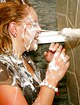 На девушку брызгает сперма через стенку, когда по инициативе своей начальницы она страстно сосет белый член. Гламурная девушка предложила своей подопечной провести время с пользой, и привела ее в кабинет, где в стене красовалась интересная дырочка. Когда из стены показался белый член, рядовая работница без приглашения присосалась к нему губками, а похотливая дамочка помогала поглубже брать пенис в ее ротик. Когда сучка сосала член, на нее попала терпкая сперма через дырку, которая забрызгала минетчицу.